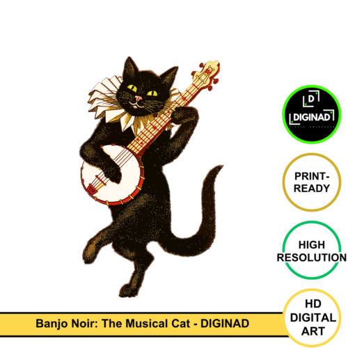 Banjo Noir: The Musical Cat – HD Digital Art (DIGINAD)