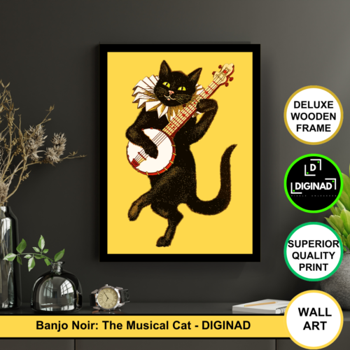 Banjo Noir: The Musical Cat – Wall Art Print (DIGINAD)